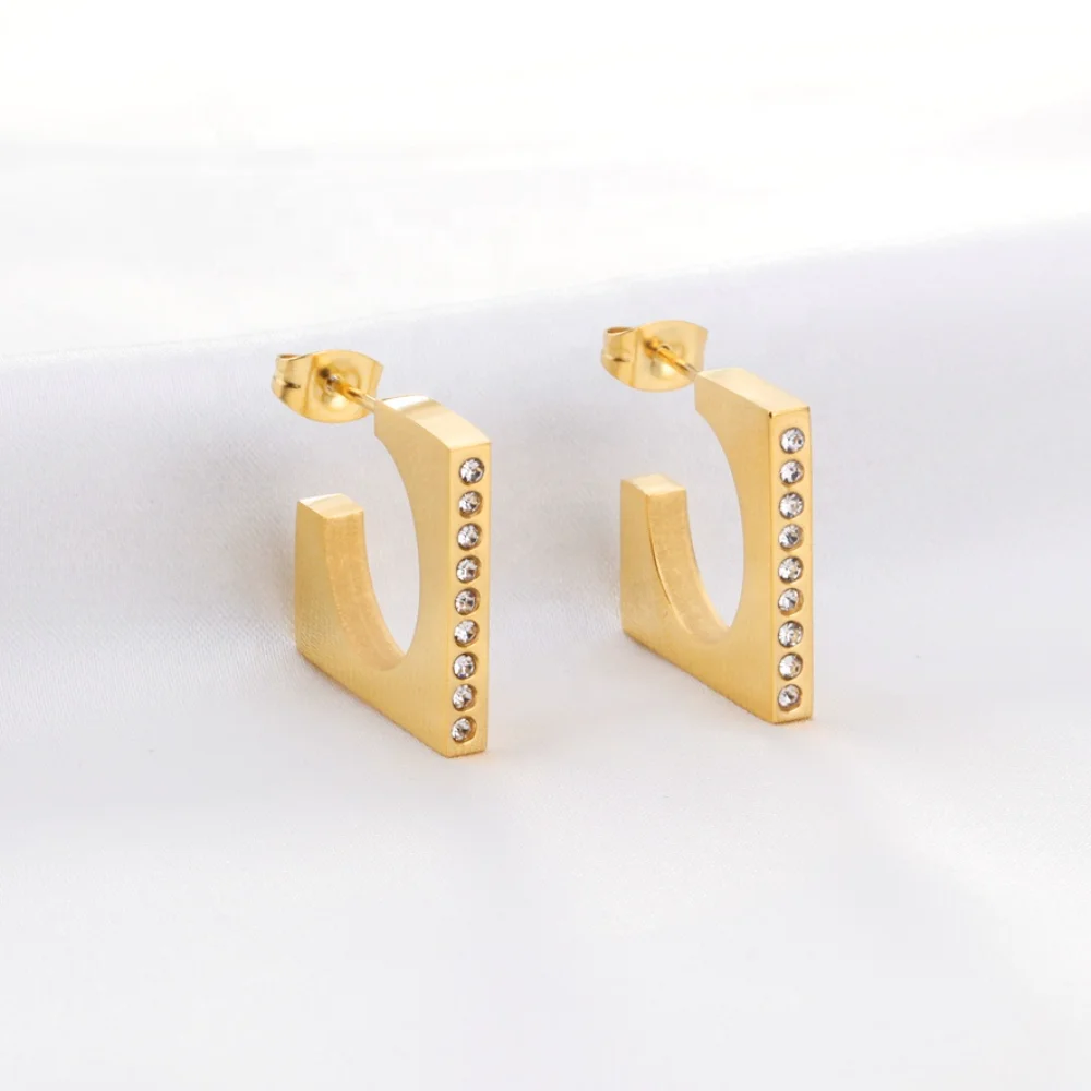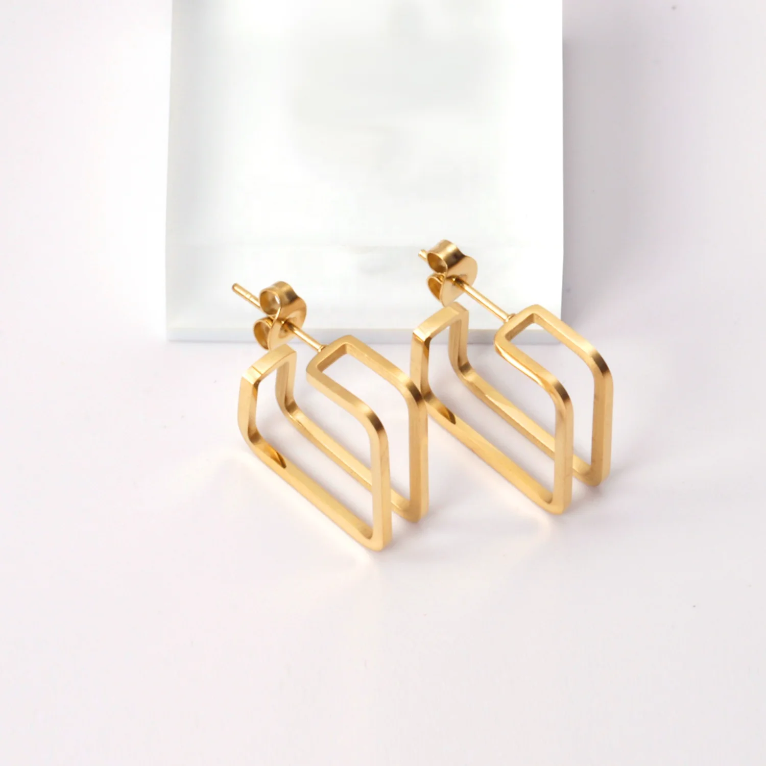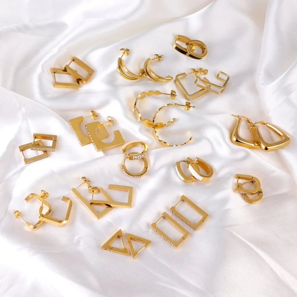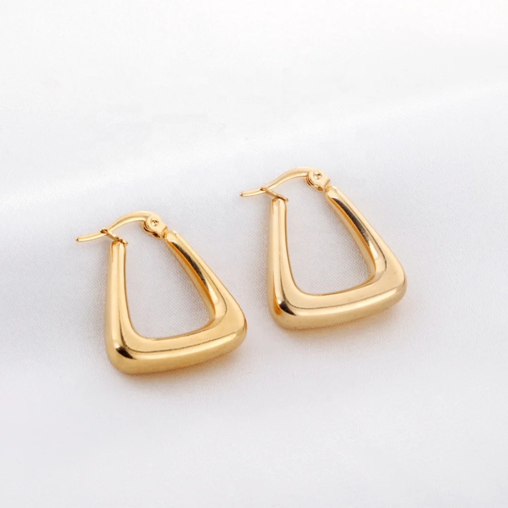 MW Light Luxury Shape Hoop Earrings 316L Stainless Steel Geometric Gold Plated Hoop Earrings Set Gold Thick Hoop Earrings